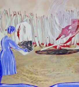 Anna Bunting’s VR dreamscapes placed the viewer within a floating sequence of alien environments that felt at once intimate and disembodied. Her delicate paintings suggest memory as a space perpetually under construction, a set of fragile spaces rearranged by time and emotion.